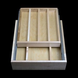 Drawer Connection offers under mount Soft Close drawer glides as well as full extension Side Mount drawer glides. Ask a representative for details. Drawer Connection offers dividers per customer specs.