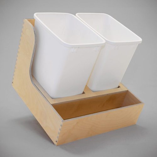 Built to last with solid woods, the Trash Rollouts can easily hold up to one or two bins while improving your homes aesthetics and reducing odors. The Scalloped Trash Rollout option is currently manufactured with Baltic Birch Plywood, featuring dovetail joinery, and offered with or without a divider system depending on your specific needs.